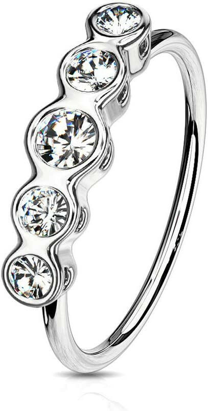 Surgical Steel Five Round CZ Bezel Top Bendable Hoop Nose Rings