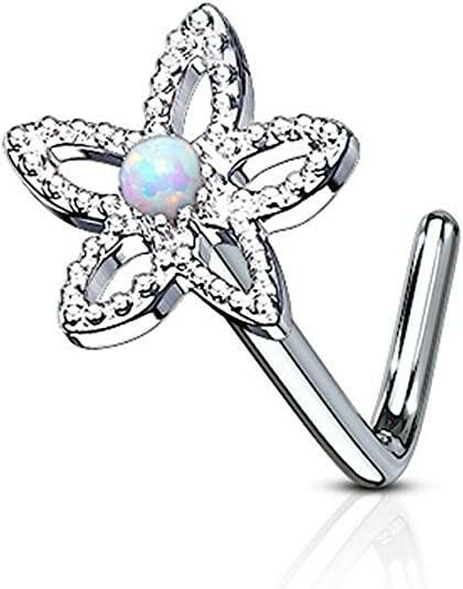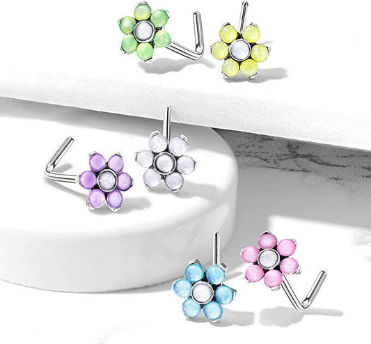 Surgical Steel Flower Contour Dome Opal Center L Bend Nose Stud Rings