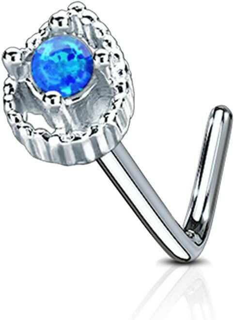 Surgical Steel Tear Drop Opal Center L Bend Nose Stud Rings