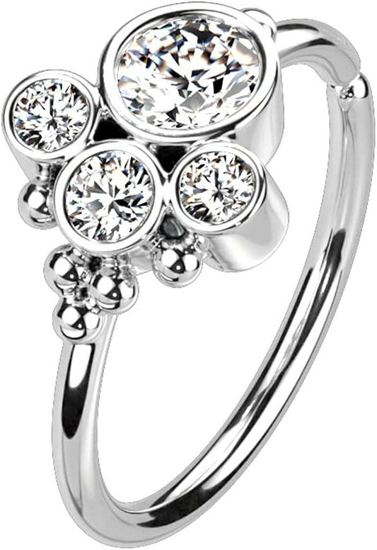 Brass Round CZ and Ball Cluster Bendable Hoop Nose Rings