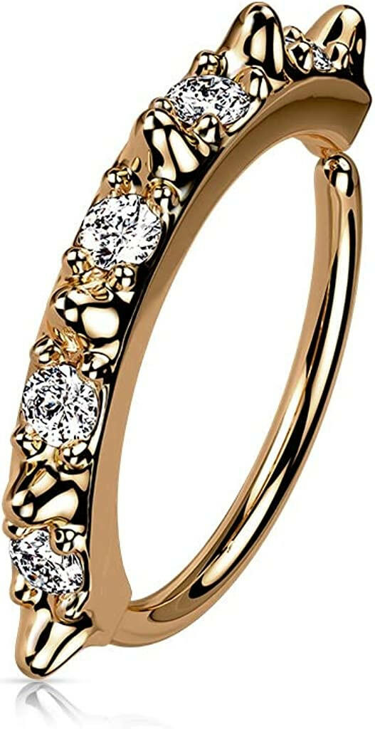 Brass Spikes with CZ in between Bendable Hoop Nose Rings