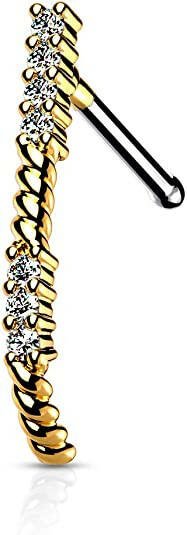 L Bend Prong Set CZ 316L Surgical Steel Nose Stud Rings