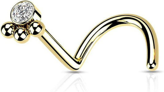 Surgical Steel 3 Beaded Ball Cluster with CZ Center Nose Screw Rings