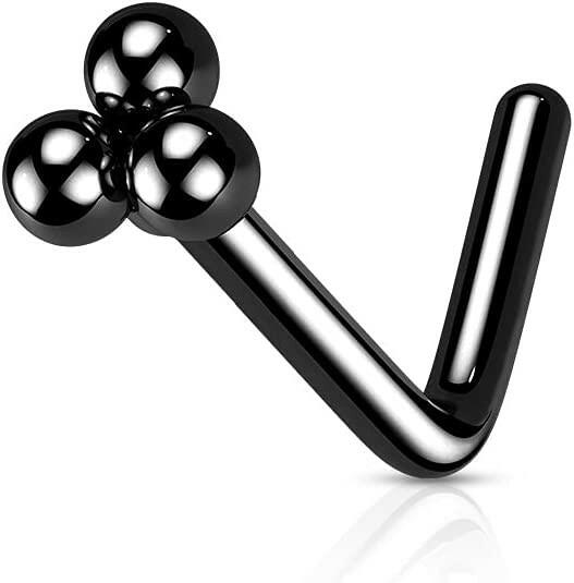 Surgical Steel Triangular Ball Cluster Top L Shaped Nose Ring