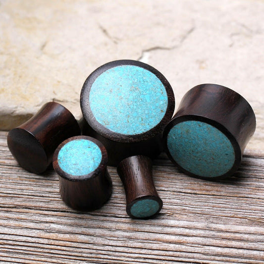 Natural Organic Sono Wood Saddle Plug with Turquoise Crush Inlay