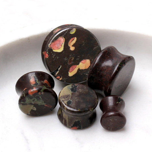 Heart Shaped Red Jade Stone Double Flared Plug Earrings