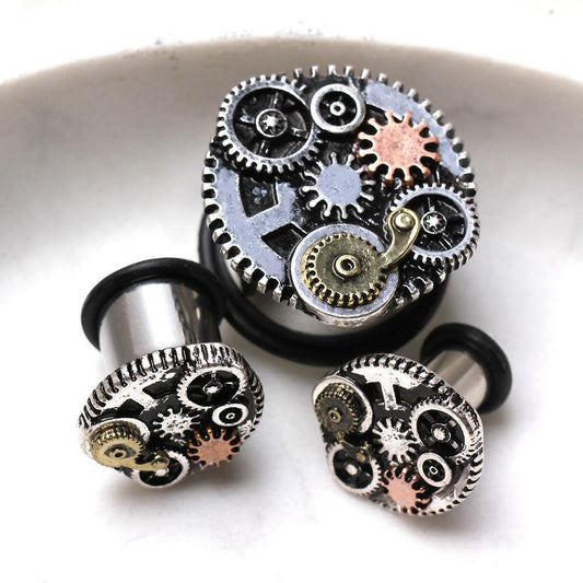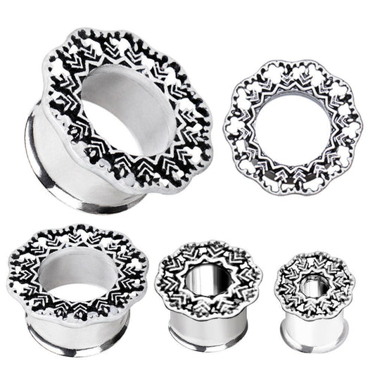 Stainless Steel Vintage Leaf Filigree Double Flare Tunnel Plug