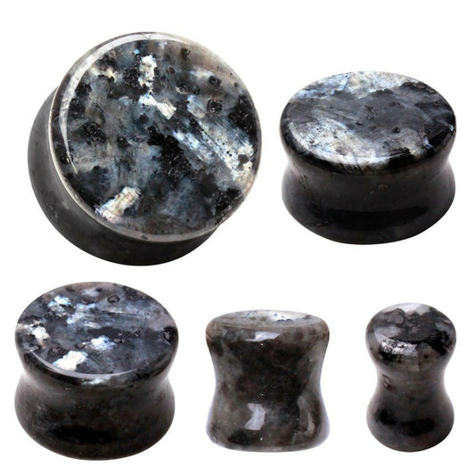 Black Agate Natural Stone Double Flared Ear Gauge Plug Earrings