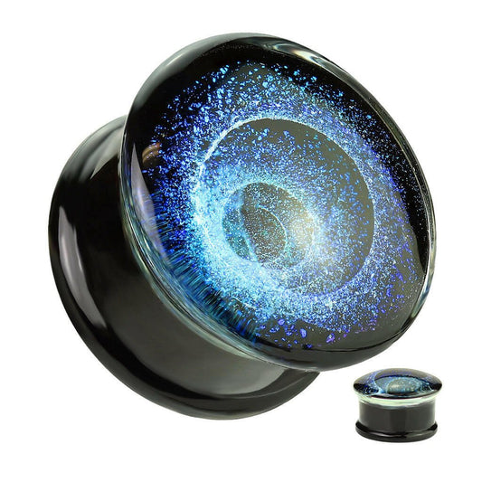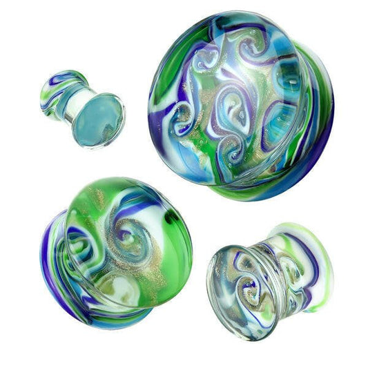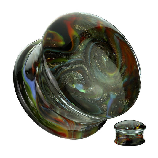 Rainbow Swirl Over Black Back Glass Double Flare Plug