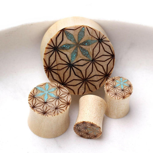 Organic Crocodile Wood Saddle Plug with Turquoise Floral Pattern