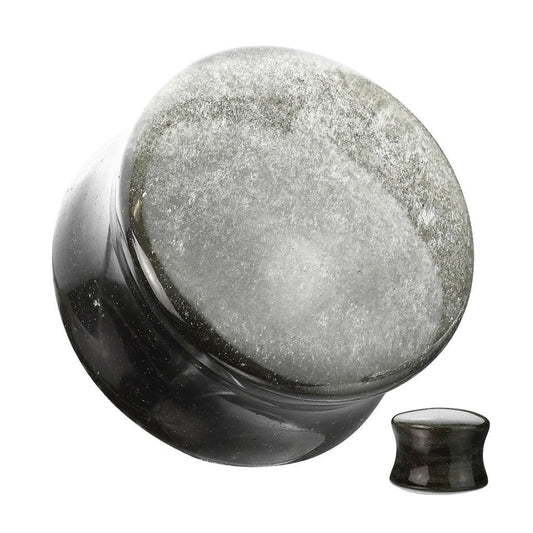 Silver Obsidian Natural Stone Convex Double Flared Plug