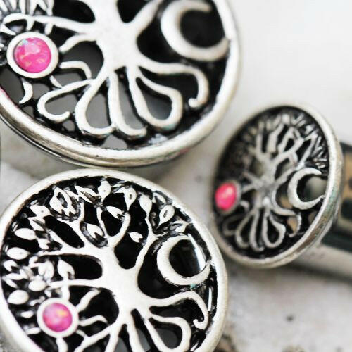 Stainless Steel Tree of Life Tunnel Plug with Sun & Moon