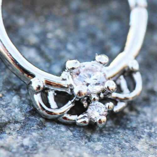 Surgical Steel Front Facing CZ Flower Hinged Segment Ring