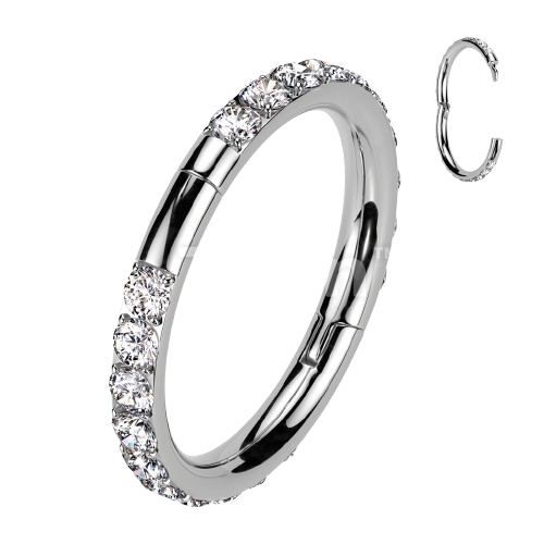 Implant Grade Titanium Hinged Segment Hoop Ring With Outward Facing Pave CZs for the Nose, Ear and More