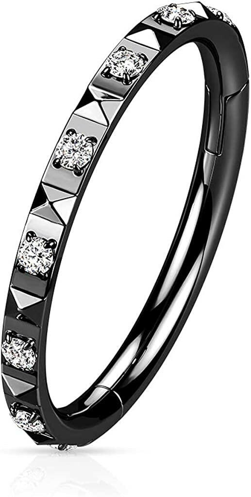 Surgical Steel CZ paved in between Pyramid Cuts Hinged Segment Ring