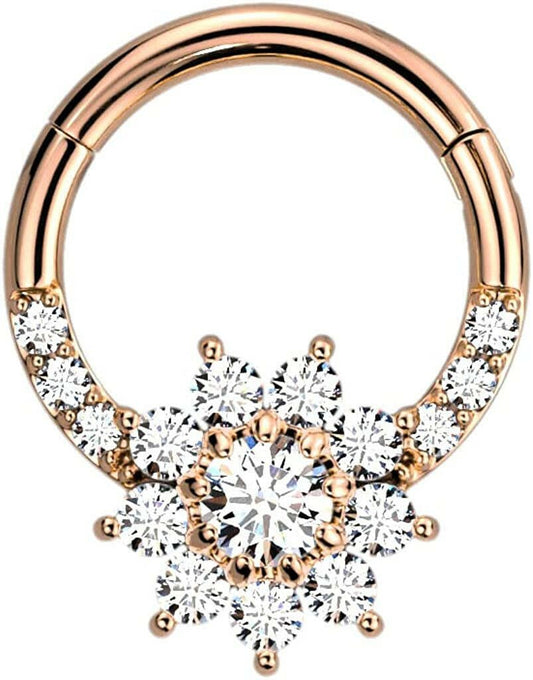 Surgical Steel Hinged Segment With Front Facing CZ Flower Ring