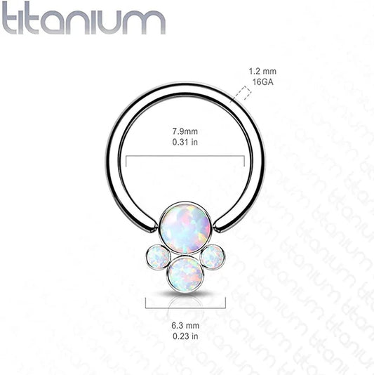 Titanium Bezel 4 Opal Cluster Captive Bead Rings