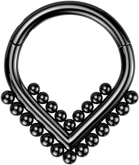 Titanium Hinged Segment With Double Beaded Ball Line Chevron Hoop Ring