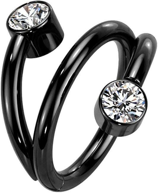 Titanium Hinged Segment With With Double Line and Round CZ Ends Hoop Ring