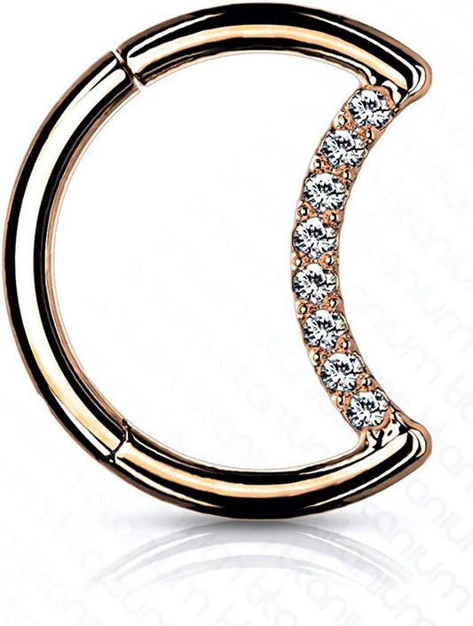 Titanium Pave CZ Crescent Moon Hinged Segment Hoop Ring