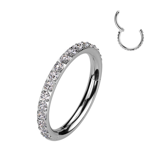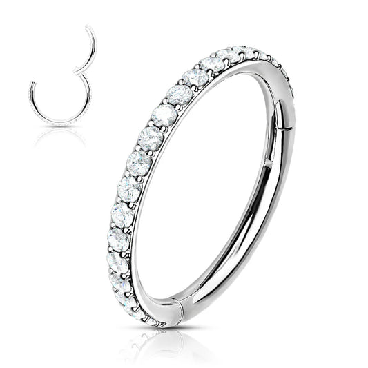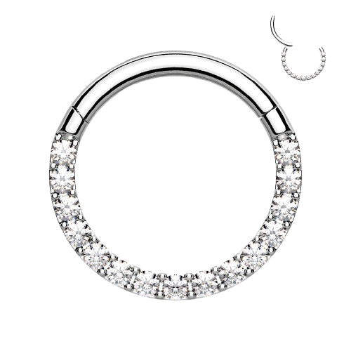 High Quality Precision All 316L Surgical Steel Hinged Segment Hoop Rings with CNC Set Front Facing CZ Paved