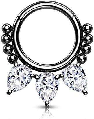 Surgical Steel 3 CZ and beads Hinged Segment Hoop Ring