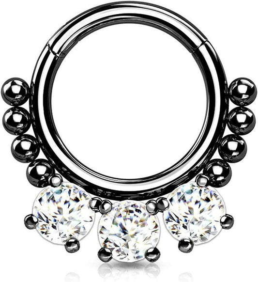 Surgical Steel 3 Round CZ and beads Hinged Segment Hoop Ring