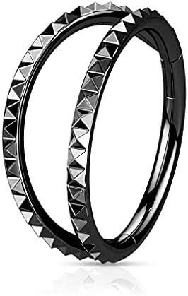 Surgical Steel Double Lined Pyramid Cuts Hinged Segment Hoop Ring