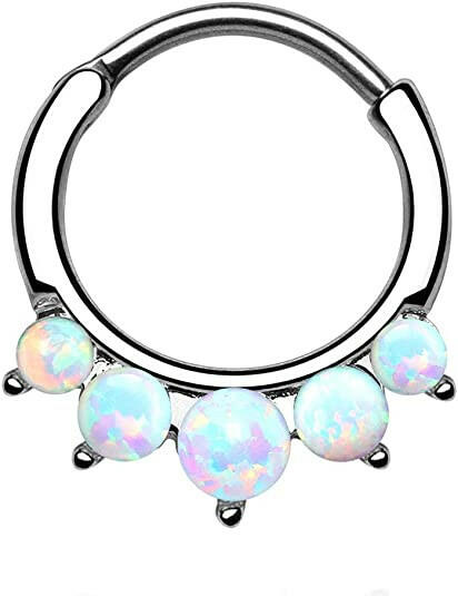 Surgical Steel Five Paved Opal Round Septum Clicker