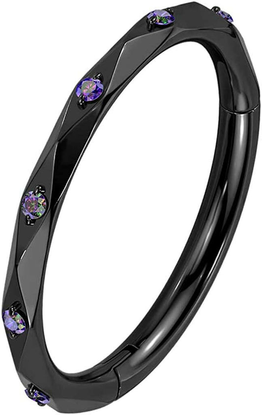 Implant Grade Titanium Hinged Segment Hoop Ring With 5 Bezel Set Forward Facing Crystals