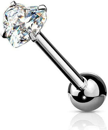 Surgical Steel Heart CZ Barbell Tongue Rings