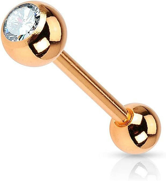 Surgical Steel Rose Gold IP Crystal Ball Barbell Tongue Rings