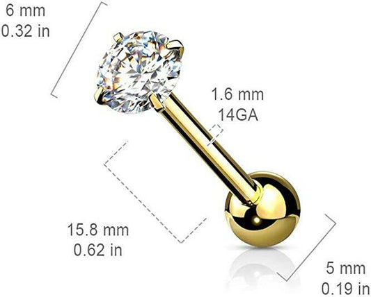 Step up your barbell game with our diverse collection of straight barbells, designed to fit a variety of piercings and personal styles. Available in sizes ranging from 18g (1mm) to 00g (10mm), you’ll find the perfect fit for any piercing. Choose from high-quality materials like 14kt gold, stainless steel, and titanium to match your unique style. With options for both internally threaded and externally threaded barbells, you can customize your look even further. Say goodbye to boring barbells and get creative with our selection of spikes, dangles, and unique designs that truly reflect your personality.