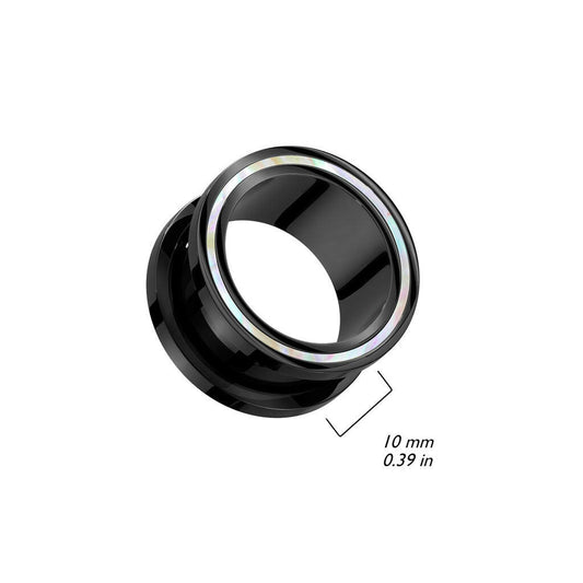 Abalone Rimmed Black PVD over 316L Surgical Steel Screw Fit Tunnel